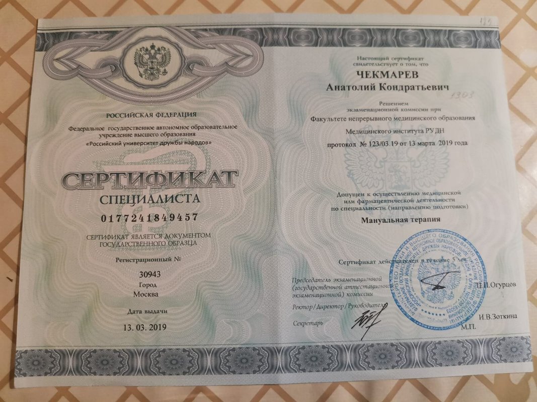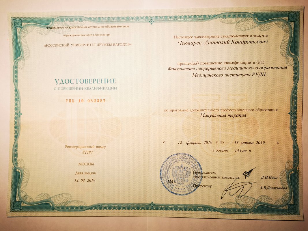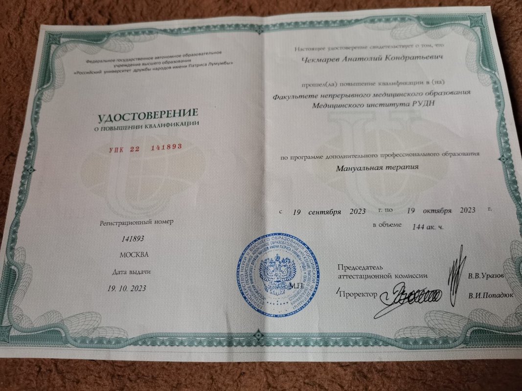 Взмолившись о помощи самому Небу, я села за компьютер, открыла интернет, и набрала соответствующие сайты. И увидела в рейтинге докторов фамилию того врача, который был мне нужен, который мне реально поможет. Сначала – по наитию, – такое бывает. А, когда открыла данные о нем и многочисленные отзывы с оценкой «отлично», почувствовала полную в этом уверенность. Доктор медицинских наук, профессор, доктор с огромным стажем. Мануальный терапевт, невролог, рефлексотерапевт. Тут же позвонила. Да, это был мой доктор – Чекмарев Анатолий Кондратьевич.